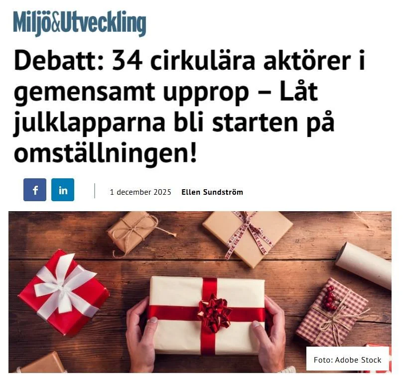 Julen, födelsedagarna och jubileerna återkommer varje år – tillfällen att mötas, glädjas och fira. Men firandet har en baksida. Enligt sammanställningar från Svensk Handel lägger svenskarna varje år tiotals miljarder på gåvor – nyproducerade saker som snabbt tappar i värde, men vars klimatavtryck består. Samtidigt står den privata konsumtionen för omkring 60 procent av Sveriges klimatutsläpp, enligt Naturvårdsverket. Det är hög tid att göra presenterna till en del av omställningen!