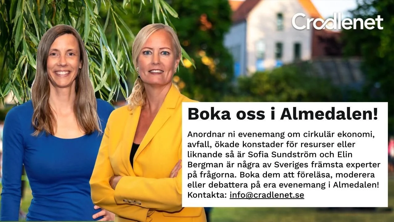 Cradlenet kommer självklart att vara på plats under Almedalsveckan även i år. Nu finns möjlighet att boka in oss till seminarier, panelsamtal, modereringar och andra evenemang med fokus på cirkulär ekonomi.